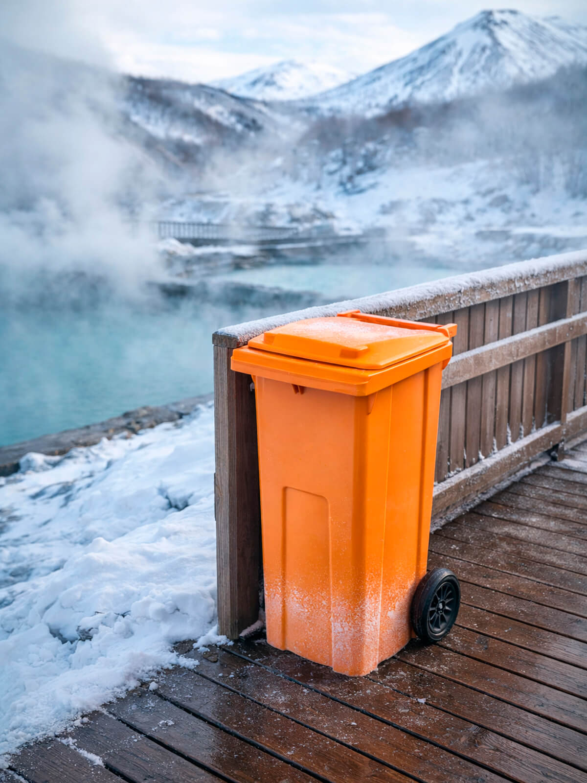 Контейнер для мусора 120 л на колёсах с крышкой, оранжевый — повышенная видимость и системный контроль отходов